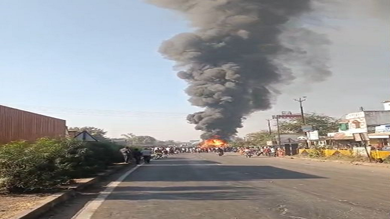 मुंबई-आगरा फोरलेन पर केमिकल से भरे ट्रक में आग दूसरे ट्रक को भी लपेटा