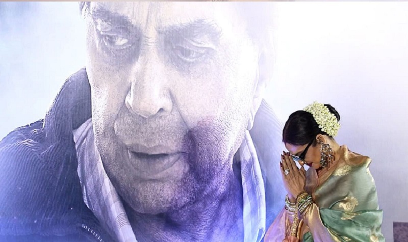 रेखा ने इस दौरान धर्मेंद्र की तस्वीर को भी हाथ जोड़कर नमन किया। उनके इस जेस्चर को देख बॉलीवुड प्रेमियों ने कमेंट्स में आशीर्वाद और प्यार भरी प्रतिक्रियाएँ दीं। यूजर्स इसे अमिताभ बच्चन और रेखा के पुराने रिश्तों से भी जोड़ रहे हैं।इस स्क्रीनिंग में बॉलीवुड के कई और सेलेब्स भी मौजूद थे, जिनमें तब्बू, सनी देओल, बॉबी देओल और देओल परिवार, अमीषा पटेल, फातिमा सना शेख और कई अन्य सितारे शामिल थे। रेखा इस अवसर पर कांजीवरम साड़ी, बालों में गजरा, मांग में सिंदूर और आंखों में काला चश्मा पहनकर आईं।