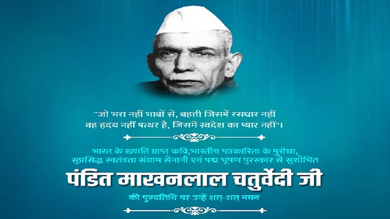 मुख्यमंत्री डॉ. यादव ने अपने संदेश में कहा कि पंडित माखनलाल चतुर्वेदी प्रदेश की माटी के सच्चे सपूत थे। स्वतंत्रता आंदोलन के दौरान उन्होंने अपनी कलम को राष्ट्रसेवा का माध्यम बनाया और जनमानस को जागृत करने का कार्य किया। उनकी रचनाएं आज भी युवाओं को देशभक्ति, कर्तव्यनिष्ठा और सामाजिक उत्तरदायित्व की प्रेरणा देती हैं। उन्होंने साहित्य और पत्रकारिता के माध्यम से समाज को नई दिशा दी और राष्ट्रीय चेतना को सशक्त किया।