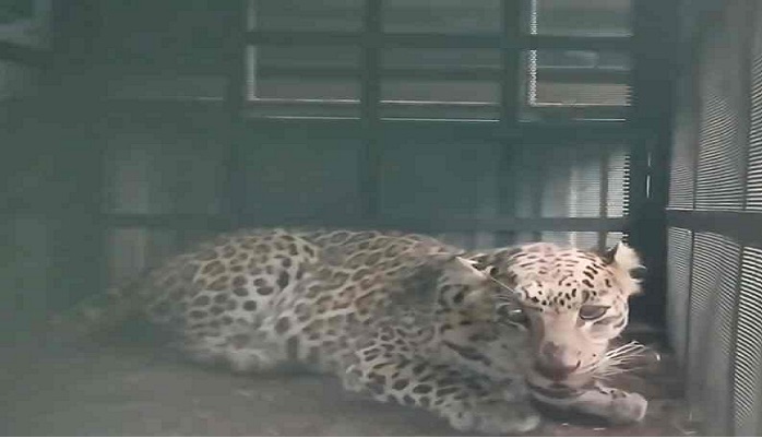 शहर में तेंदुआ देखा गया वन विभाग ने सुरक्षित पकड़कर किया रेस्क्यू