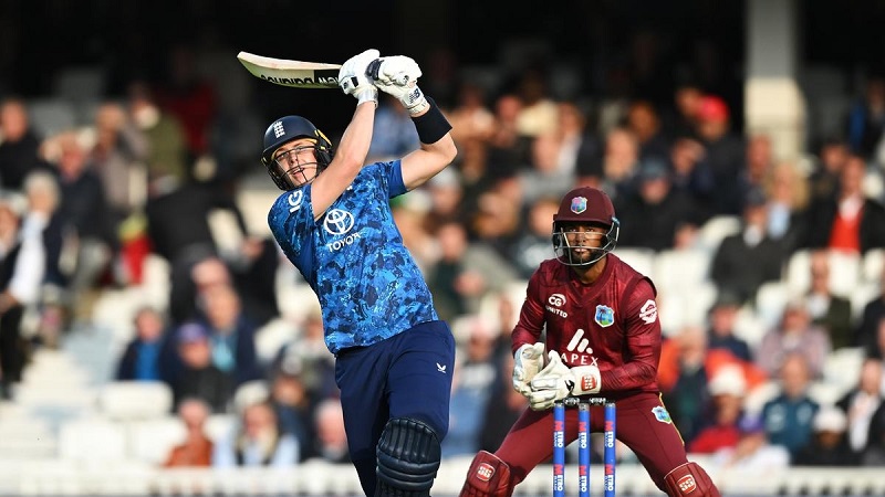 जवाब में इंग्लैंड की टीम संघर्ष करती नजर आई। सलामी बल्लेबाजों जोस बटलर और फिल सॉल्ट ने शुरू में अच्छी शुरुआत दी, लेकिन 19वें ओवर में टीम 166 रन पर ढेर हो गई। इस दौरान लियाम डॉसन और सैम करन ने कुछ संघर्ष दिखाया, लेकिन इंग्लैंड की टीम वेस्टइंडीज की तूफानी गेंदबाजी के आगे टिक नहीं सकी। सैम करन ने 30 गेंदों में 43 रन नाबाद बनाए।