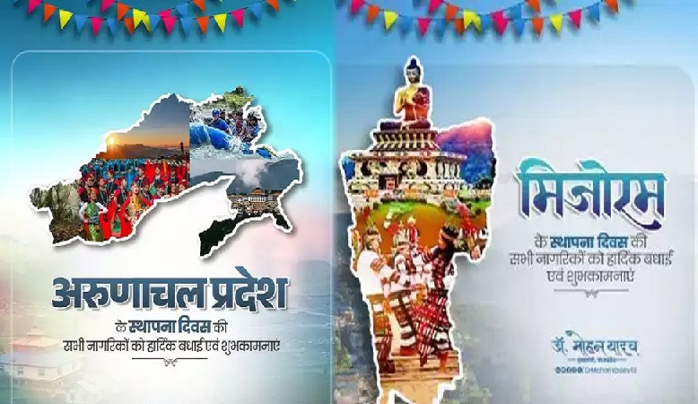 अरुणाचल प्रदेश को उगते सूरज की भूमि के रूप में भी जाना जाता है और इसका नाम अरुणाचल सूर्य की किरणों से आलोकित पहाड़ियों के कारण पड़ा है। यह राज्य भारतीय संविधान के 55वें संशोधन के बाद 20 फरवरी 1987 को आधिकारिक तौर पर 24वें राज्य के रूप में स्थापित हुआ।  मिजोरम का इतिहास भी इसी दिन से जुड़ा हुआ है। पहले यह लुशाई हिल्स के नाम से असम का हिस्सा था और 1972 में इसे एक केंद्र शासित प्रदेश बनाया गया। अगले दशक में बातचीत औरसंविधान संशोधन के माध्यम से इसे 20 फरवरी 1987 को 23वें राज्य का दर्जा प्राप्त हुआ। मुख्यमंत्री डॉ. यादव के बधाई संदेश ने एकता, सद्भाव और राष्ट्र के प्रति समर्पण की भावना को भी उजागर किया। उन्होंने आशा व्यक्त की कि दोनों राज्यों की संस्कृतियां और परंपराएँ समृद्ध होती रहें और ये राष्ट्र के उन्नयन में महत्वपूर्ण भूमिका निभाते रहें।