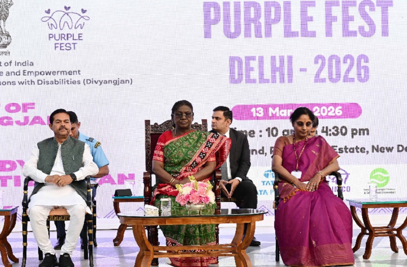 नई दिल्ली। राष्ट्रपति भवन में शुक्रवार को दिव्यांगजनों की प्रतिभा, उपलब्धियों और आकांक्षाओं का उत्सव मनाने के लिए ‘पर्पल फेस्ट’ का आयोजन किया गया। इस अवसर पर राष्ट्रपति द्रौपदी मुर्मु ने कहा कि वर्ष 2047 तक ‘विकसित भारत’ के लक्ष्य की दिशा में देश आगे बढ़ रहा है और इस यात्रा में दिव्यांगजन समान भागीदार हैं।
