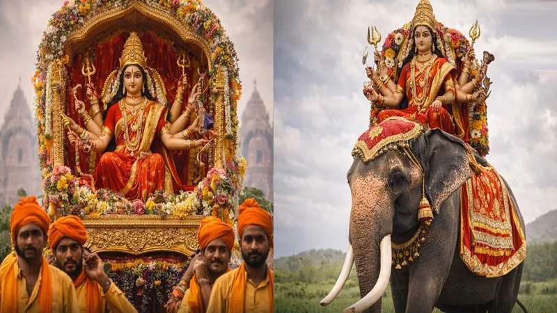 इस वर्ष मां जगदंबा का आगमन गुरुवार को पालकी पर हुआ, जबकि प्रस्थान शुक्रवार को हाथी पर होगा। शास्त्रों के अनुसार, पालकी पर आगमन सामान्यतः शुभ नहीं माना जाता। यह प्राकृतिक आपदाओं, सामाजिक उपद्रव, दंगे या आर्थिक चुनौतियों का संकेत दे सकता है। गुरुवार को आगमन से जुड़े संकेतों को सावधानी और वित्तीय सतर्कता से जोड़ा जा रहा है।