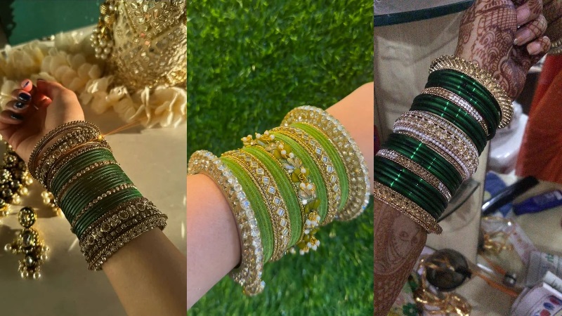 इस साल बाजार में हरी चूड़ियों के कई नए और यूनिक डिजाइन्स देखने को मिल रहे हैं जो आपके ट्रेडिशनल लुक को एक नया ट्विस्ट दे सकते हैं अब सिर्फ सादी कांच की चूड़ियों का जमाना नहीं रहा बल्कि फैंसी और डिजाइनर चूड़ियां ट्रेंड में हैं जो हर उम्र की महिलाओं को आकर्षित कर रही हैं