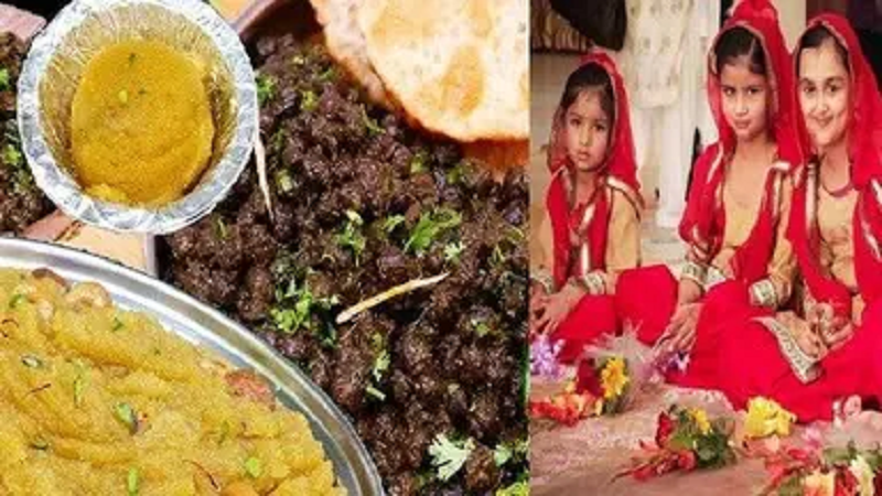 कन्या पूजन भोग में देवी के पसंदीदा और पारंपरिक व्यंजन शामिल थे। इसमें खीर, बेसन का हलवा, शकरपारा, लड्डू, फल, मिठाई और काले चने का प्रसाद शामिल किए गए है।