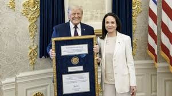रिपोर्ट्स के अनुसार, 2025 में मचाडो को नोबेल शांति पुरस्कार मिला था, जिसके बाद उन्होंने अपना पदक ट्रंप को सौंप दिया।