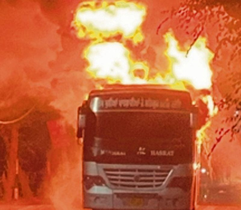 शाजापुर में चलती बस में भीषण आग, 60 से ज्यादा बारातियों ने कूदकर बचाई जान