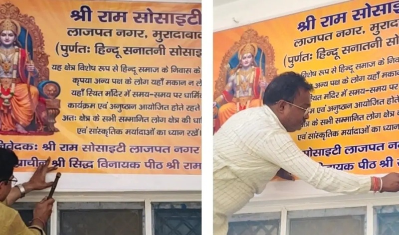 विरोध का यह तरीका शनिवार को कुछ घरों से शुरू हुआ, जो रविवार तक बढ़कर 25 से ज्यादा घरों तक पहुंच गया। भगवान राम की तस्वीर वाले इन पोस्टरों में लिखा है कि यह क्षेत्र “पूर्णतः हिंदू सनातनी सोसाइटी” है और अन्य पक्ष के लोग यहां मकान न लें।